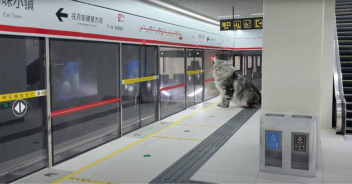 迷你地鐵最可愛的部分,是它不是靜態模型,而是一個需要被使用的空間,邢志磊花了不少時間訓練貓咪熟悉月台、上下車、穿越出口,讓牠們可以安心「佔領」地鐵站。影片裡,貓咪小心翼翼踏上手扶梯,探頭研究月台邊界,甚至出現像「困惑的貓咪列車長」之類的名場面。對他來說,設計這些空間並非炫技,而是將生活中的基礎設施重新想像成寵物友善的娛樂場域,過去兩年,他已經為貓咪建造泳池、私人小島、超市、電影院等,但這次的地鐵站是他至今最複雜的作品。
