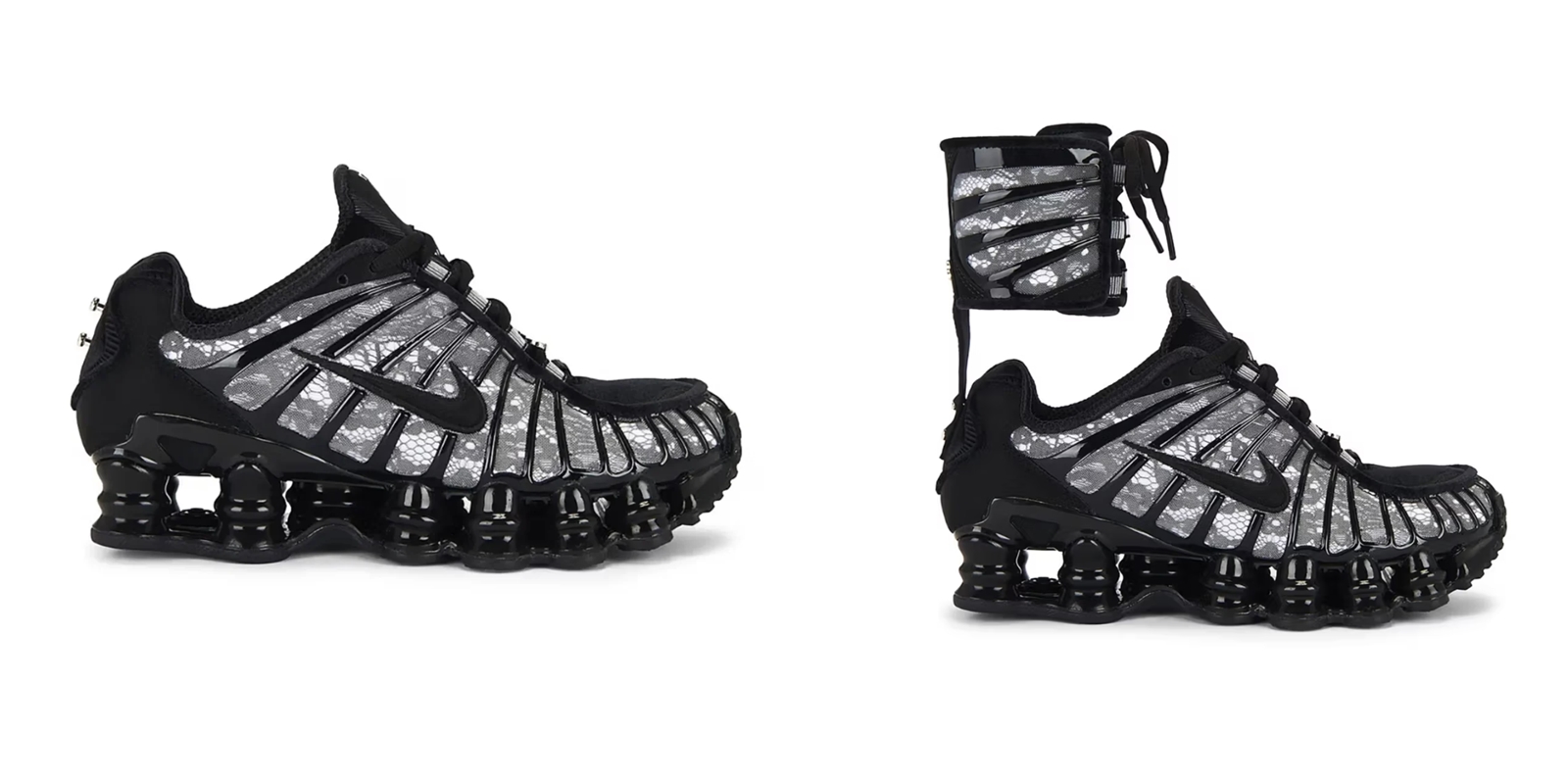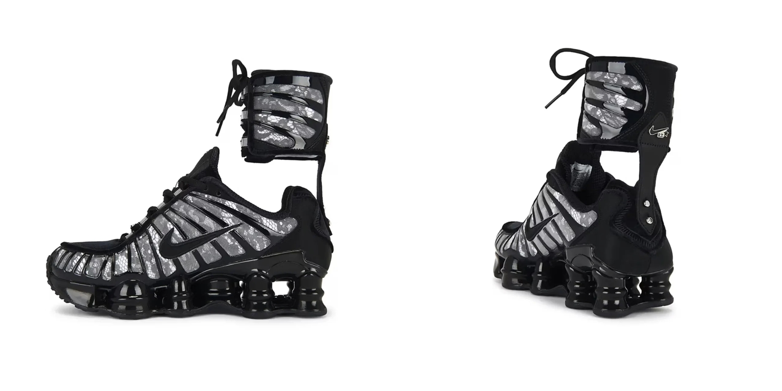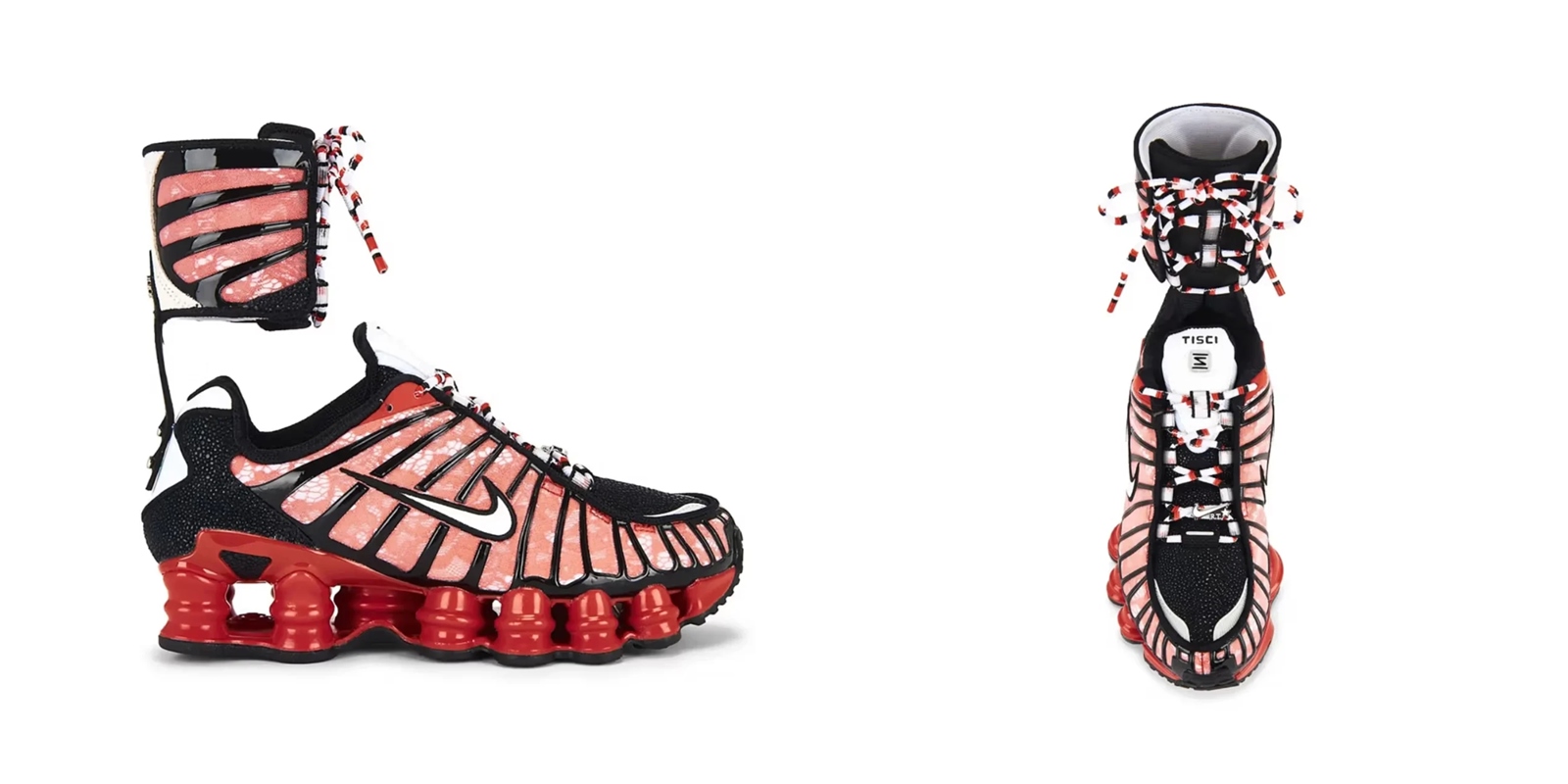 聯名系列目前有三款配色:經典黑白、清新白黑及醒目的哈瓦那辣椒紅,承襲 Shox TL 特別的彈性柱中底結構,鞋身以質感皮革和網眼布混搭呈現,並擁有代表 Tisci 的「RT」與 Nike 雙重品牌識別,將運動鞋推向另一種奢華境界;更吸睛的是可拆卸的高筒鞋領系統,不只讓穿搭方式更豐富,也勾勒出層次十足的街頭時尚輪廓。