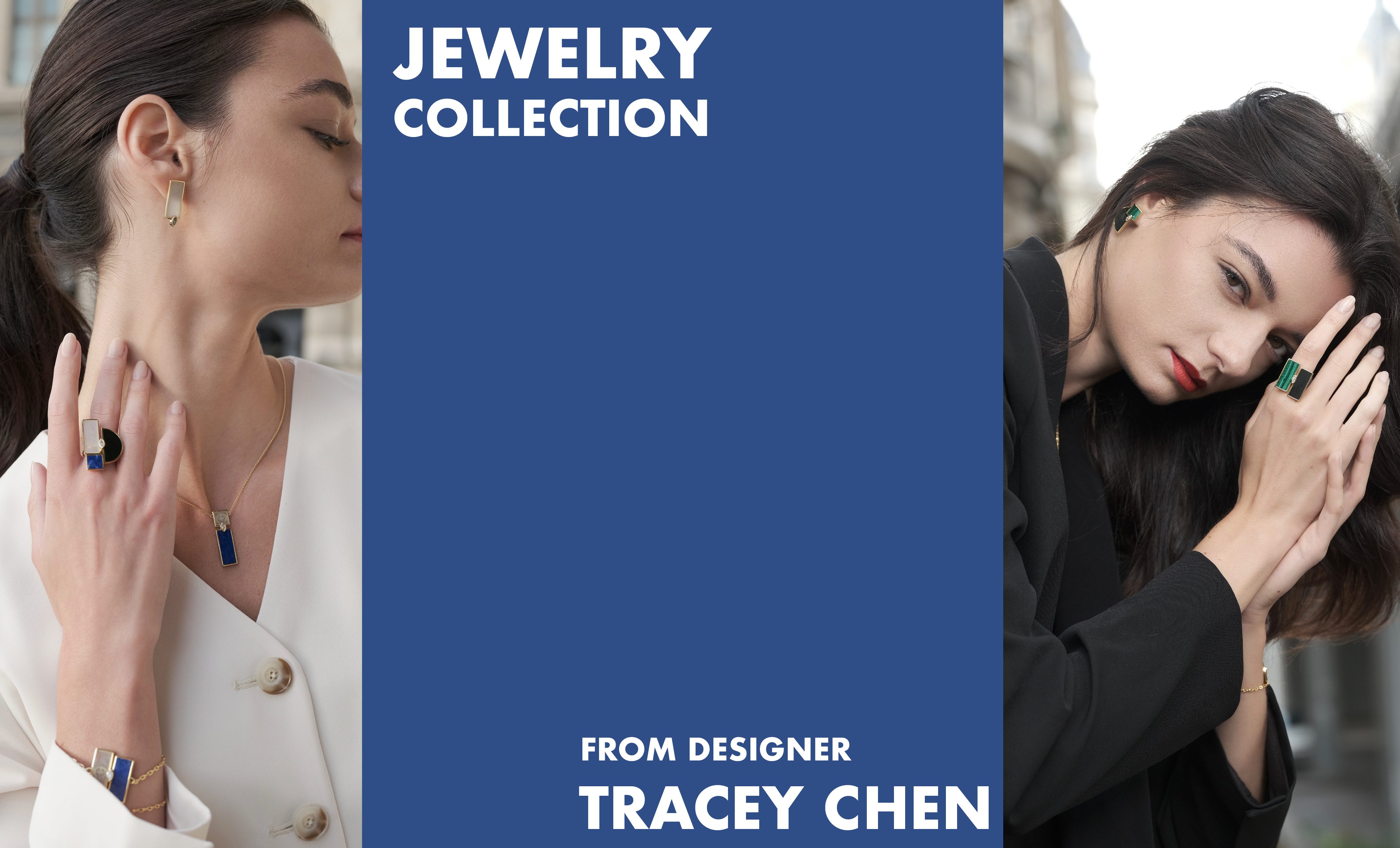 TRACEY CHEN|天然白翡+孔雀石/母貝未來鑽石耳釘