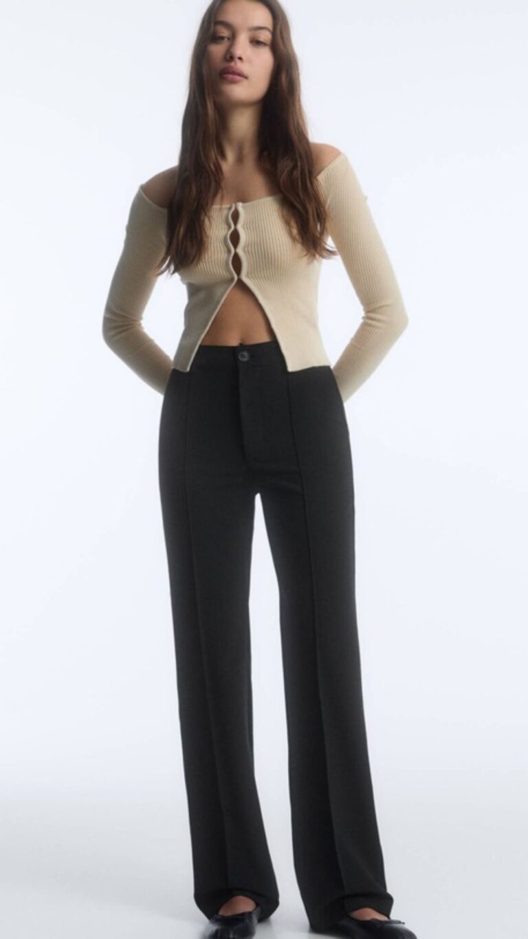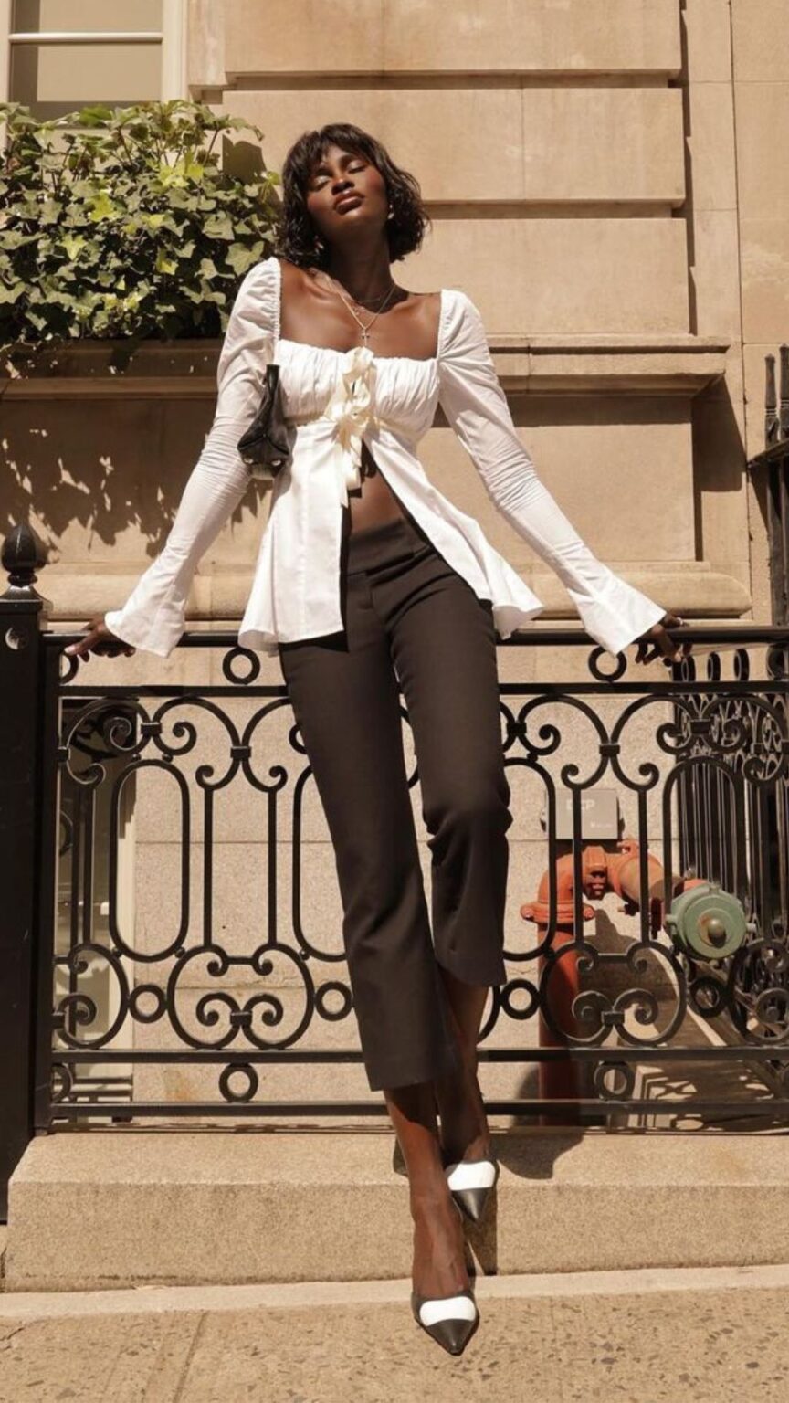 如果是從辦公室出發或是工作後直接前往約會,那麼就以上班的經典穿搭上陣吧!以九分西裝褲顯露合身線條,再選擇特殊剪裁的上衣展現微露肌感,是整體造型的小亮點,而尖頭跟鞋襯出腿部最性感的線條;不喜愛穿跟鞋的讀者們,也可以配上微喇叭長褲拉長腿部視覺,加上芭蕾平底鞋腰身微露,知性中依舊保有性感。赴約前再塗上顏色略深的口紅,提亮精緻感,用這樣既專業又率性的現代女子氣息,讓對方無法移開視線。