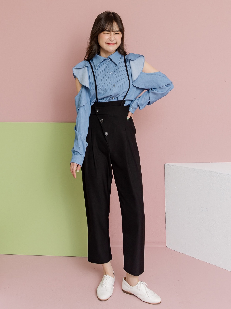 1. Black Asymmetric High Waist Suspender Pants 黑色不規則高腰西裝吊帶褲