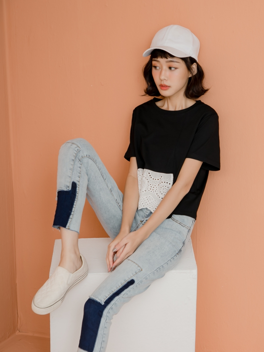 2. Blue Patch Denim Pencil Pants 藍色率性拼接牛仔鉛筆褲