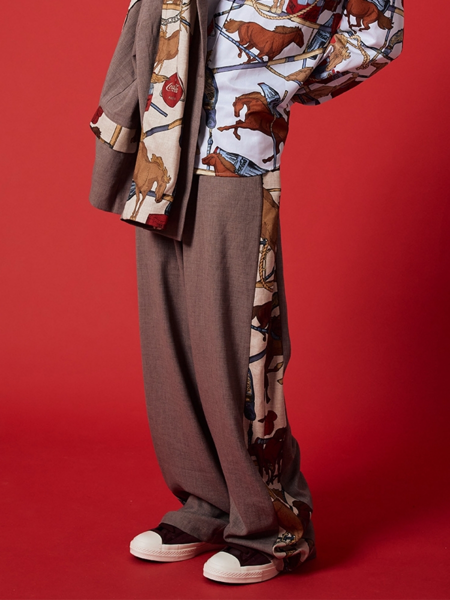 2. Pioneer’s Imprinted Plain Patchworkfloor-Length Wide Trousers CLA x DW x CocaCola 素面拚印記斜邊拼接落地寬褲