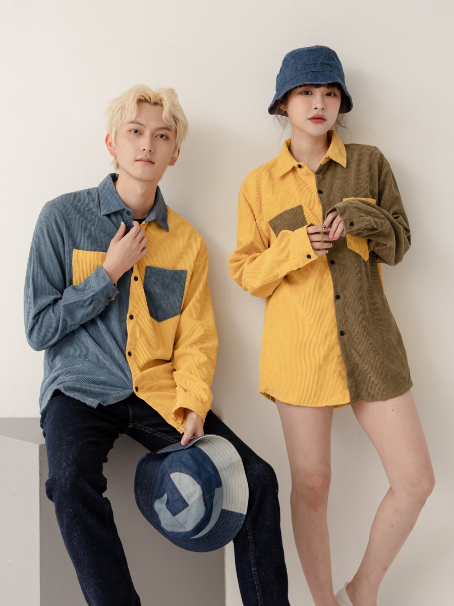 3. Green Color Block Corduroy Blouse 綠黃拼接燈芯絨長版襯衫