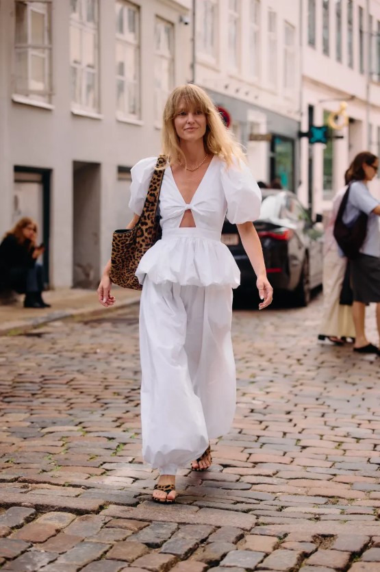 誰說拖鞋不夠時髦?寬褲和造型襯衫為你打好基礎,再選對豹紋款拖鞋,一片白中與豹紋包包巧妙呼應,整體造型立刻有了靈魂。