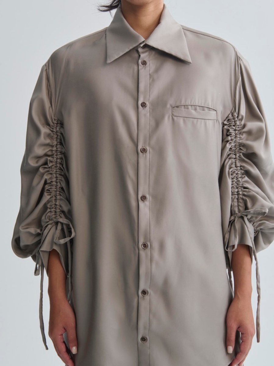 3. ODYSSEY|Long Sleeve Drawstring Long Shirt # 抽繩袖身長板襯衫