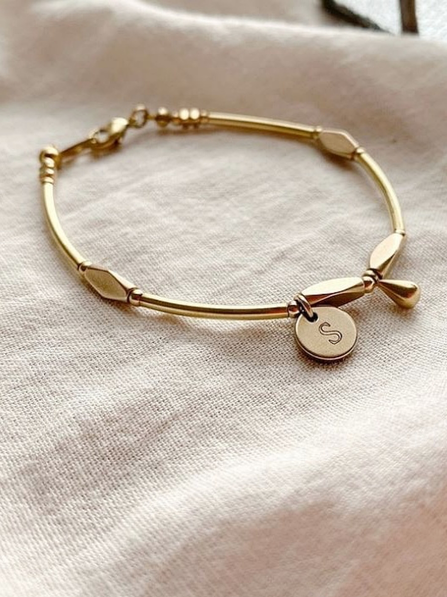 3. Fuchia 語黃銅|Customize Alpabet Brass Bracelet #【客製】暖暖-刻字字母黃銅手環