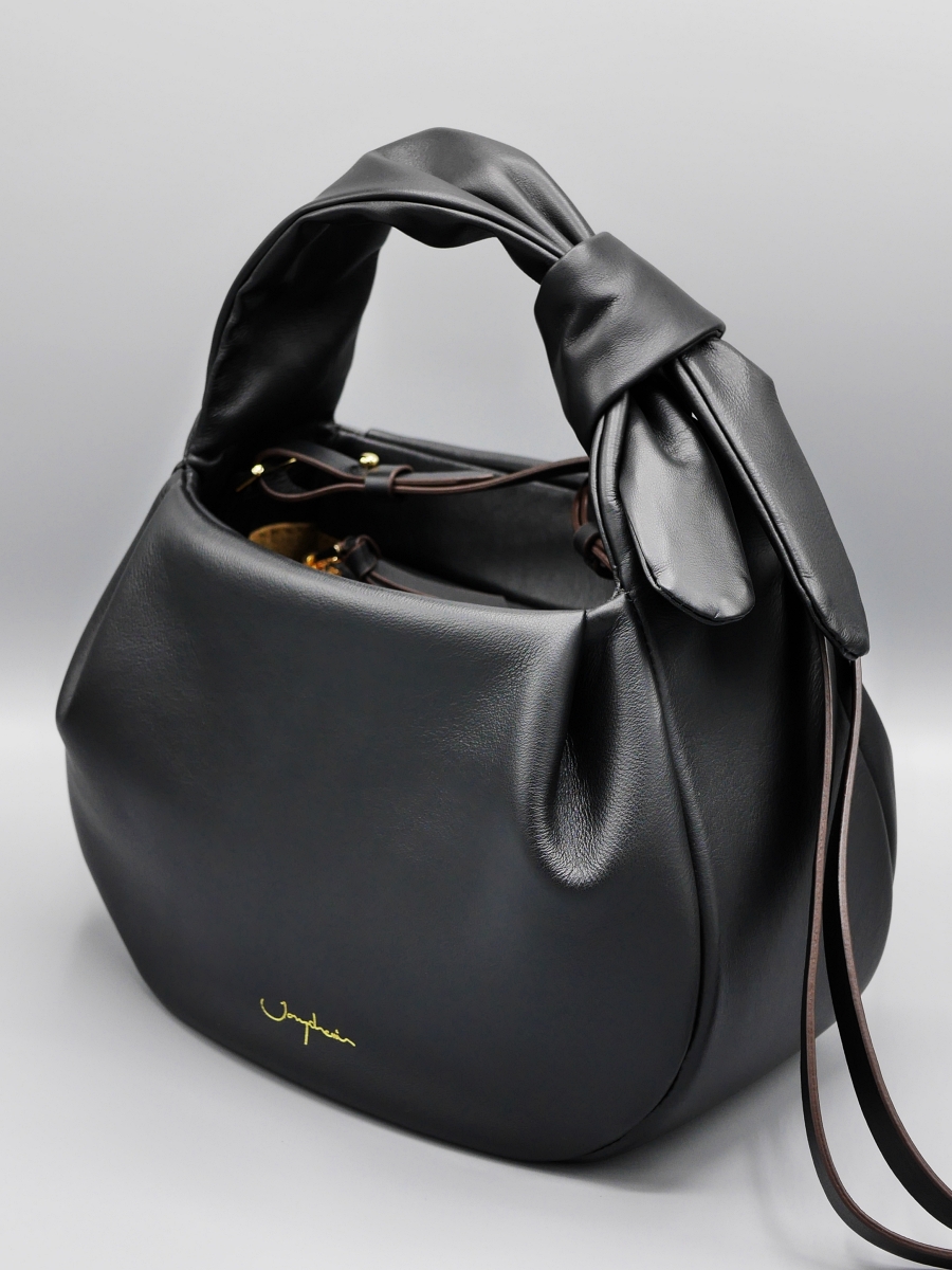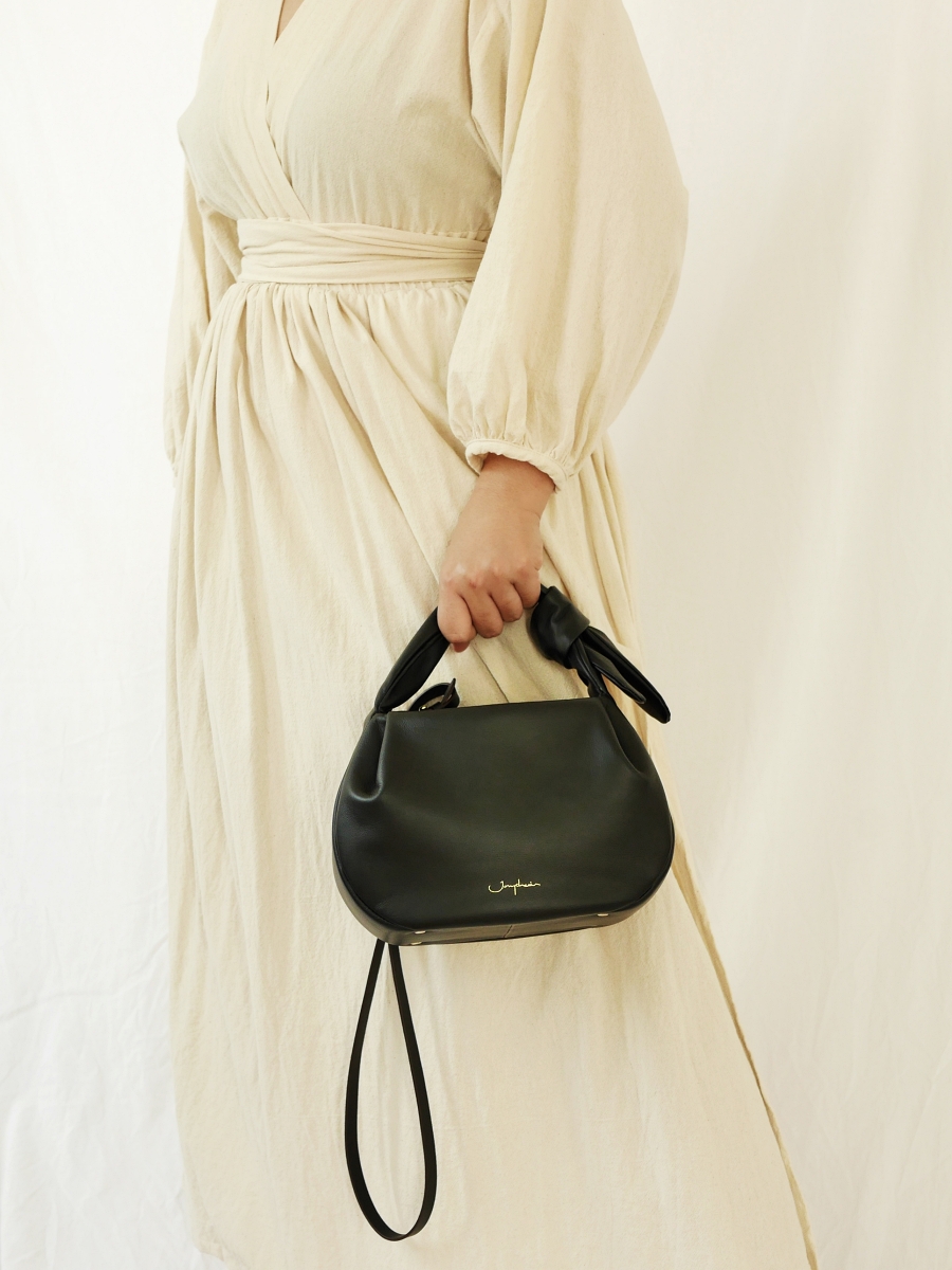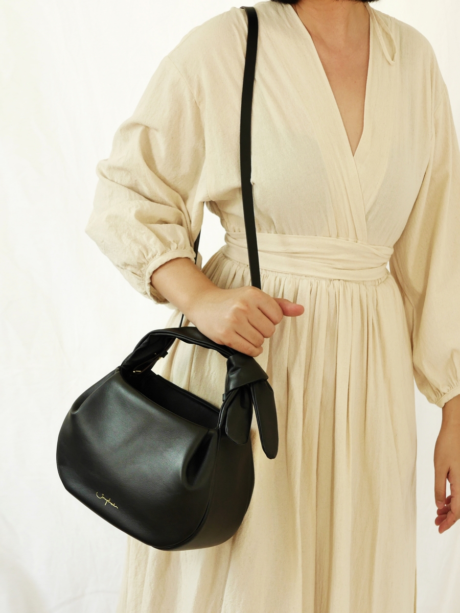 It is designed for casual daily life, with a minimal and simple fashion style. Its handle is a leather knotted like a bow-tie, so it looks cute and heartwarming for you.