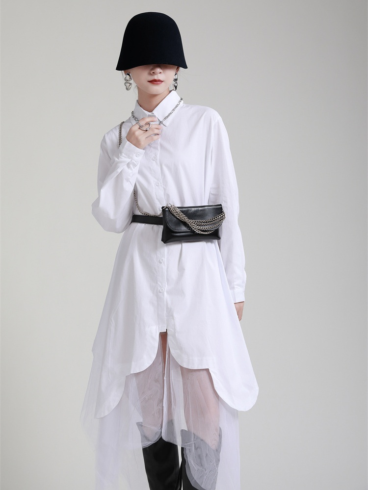 F.|赫本風不規則網紗拼接白洋裝 黑與白的不規則交織 幻化成一眼就不平凡的模樣 DRESSES 洋裝 短洋裝 Street Classic Wedding & Party|婚禮派對 Work|職場辦公 Chic 我要購買 F. F. Follow Back